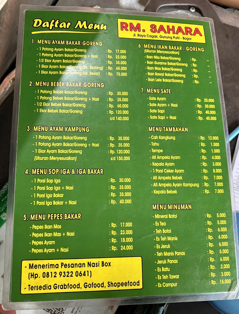Welcome to Rm Sahara Ayam Penyet Special, a hidden gem located in the heart of Bogor, Indonesia. This eatery specializes in classic Indonesian flavors, offering a delightful range of dishes that never disappoint. The highlight here is undoubtedly the Ayam Penyet, where tender chicken is smashed and served with a variety of sambals, particularly the 'sambal hijau' that brings a unique spicy twist. Customers rave about the delicious bebek goreng—tender duck paired with rich sambals, a must-try for any food lover. While some reviews point out the toughness of the meat in certain dishes, the overwhelming consensus praises the affordability and authentic flavors. With its strategic location and homey vibe, Rm Sahara offers a taste of Indonesian comfort food that has local patrons returning for more. Whether eating in or opting for takeout, this spot promises a delightful culinary experience that’s hard to forget.